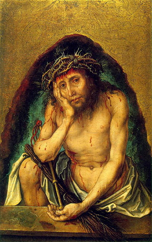 Albrecht Dürer, Cristo, uomo dei dolori, 1493 c., Karlsruhe (Germania), Staatliche Kunsthalle.